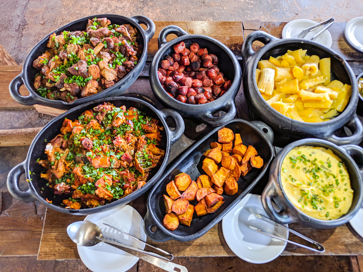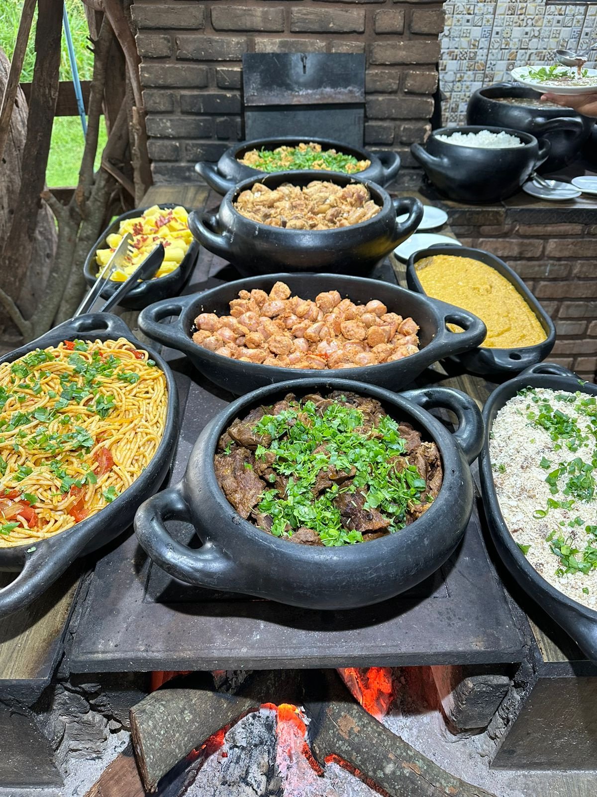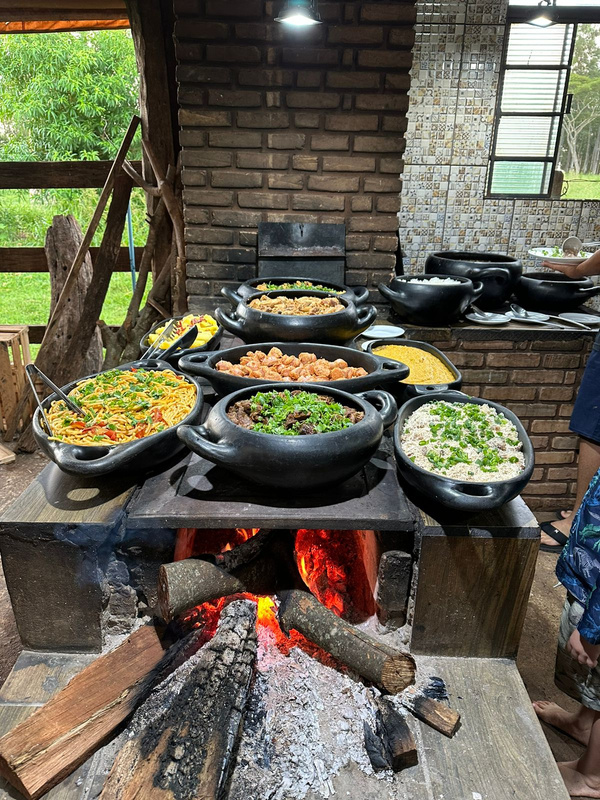 No coração do Recanto do Sossego, a experiência gastronômica é um deleite para os sentidos. Delicie-se com o sabor autêntico da culinária rural, onde a tradição encontra a inovação. Nosso almoço, preparado no fogão a lenha, é uma verdadeira celebração de sabores, com pratos que capturam a essência da cozinha regional.