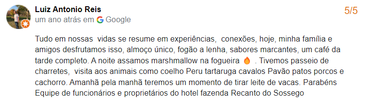 No Hotel Fazenda Recanto do Sossego, sua escapada perfeita ganha vida! Aqui, aconchego e natureza se abraçam para criar uma experiência única. Imagine-se em acomodações confortáveis, envolto em um atendimento que é mais que especial. Nosso diferencial está na serenidade do lugar, na culinária regional que é puro sabor e nas atividades ao ar livre que prometem diversão genuína. Não é apenas uma estadia; é a construção de memórias memoráveis. Venha ser parte deste refúgio onde a hospitalidade se funde com a beleza natural. Estamos ansiosos para recebê-lo!
