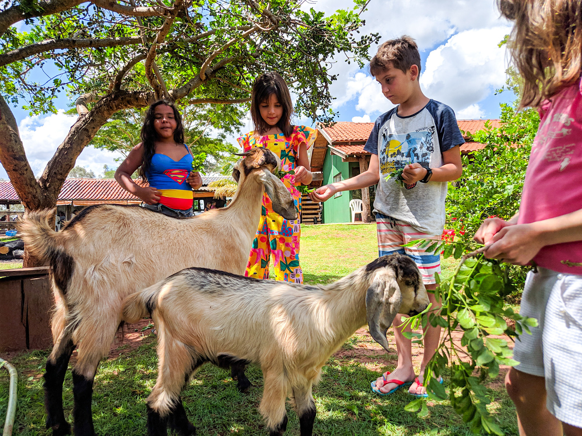 Aqui a experiência vai além da hospedagem; é uma imersão na vida da fazenda! Nossos hóspedes têm a oportunidade única de interagir com uma variedade encantadora de animais. Faça novos amigos entre os cavalos, vacas, pavões, bodes, cabras, perus, gansos, peixes, galinhas, coelhos, búfalos e muito mais.