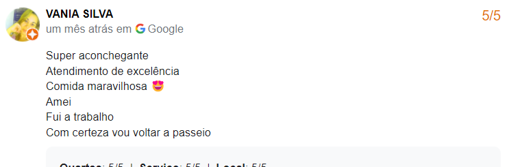 FEEDBACK DOS NOSSOS HÓSPEDES